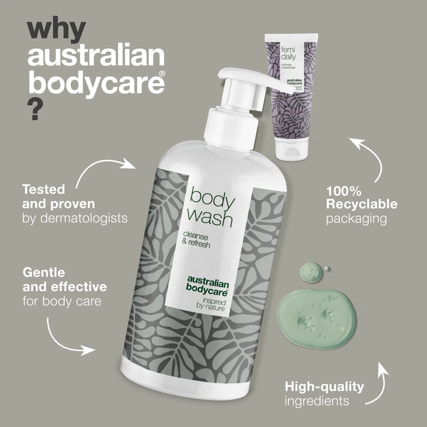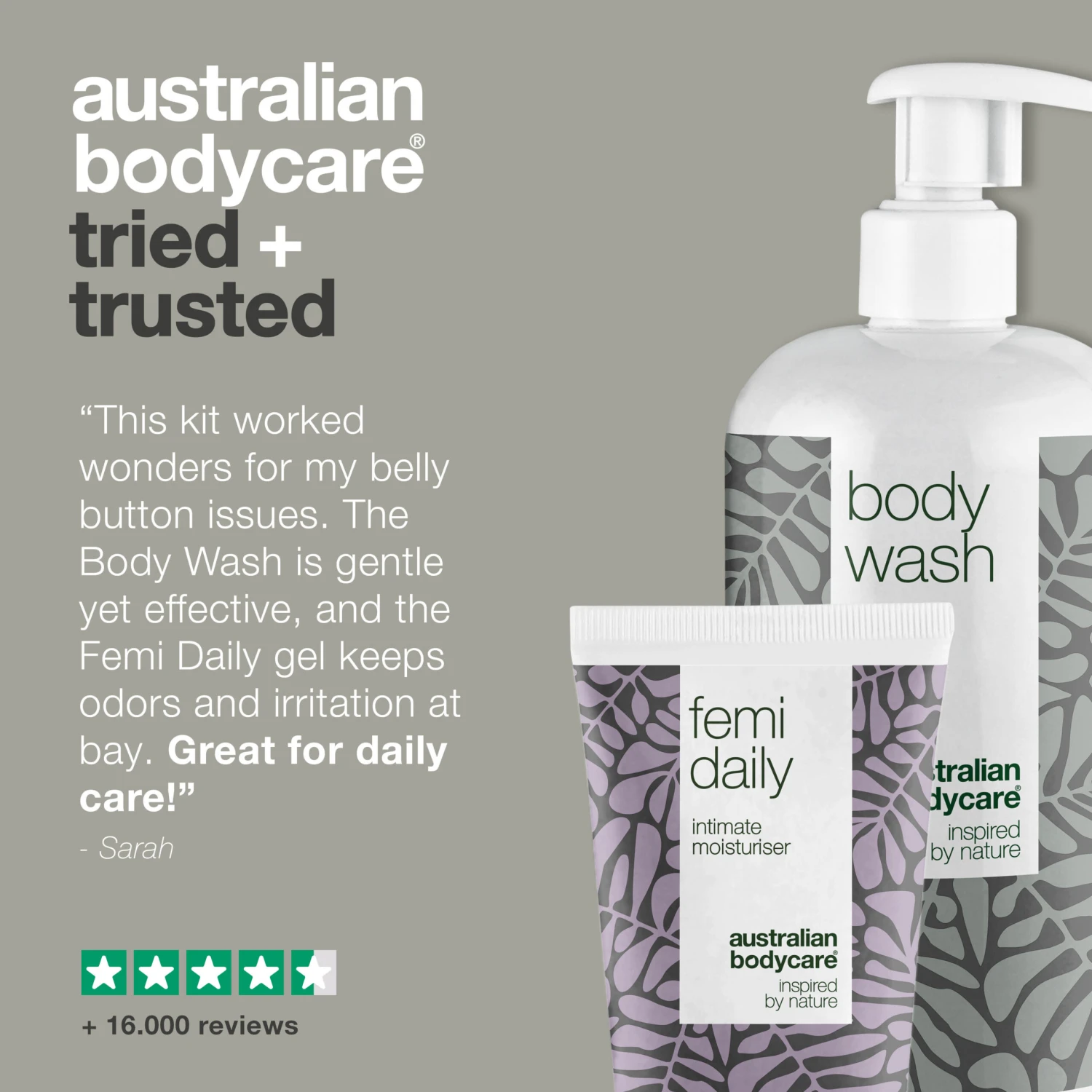 2-pack to relieve and care for a smelly belly summary – can be used for the daily care of a belly summary yeast infection, red, and irritated skin | Body soap for the daily washing and cleaning – counteracts bacteria and preserves the skin’s healthy balance | Intimate gel for care and relief of red belly summary, odor, and irritation.