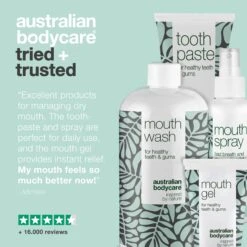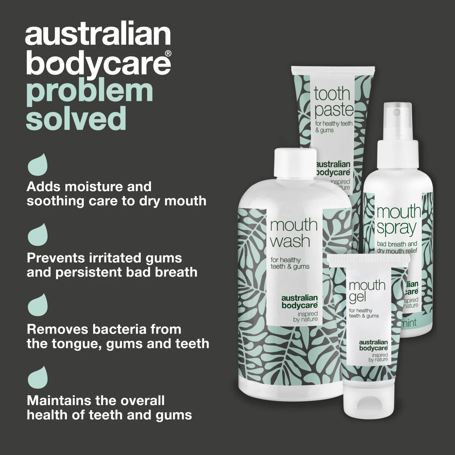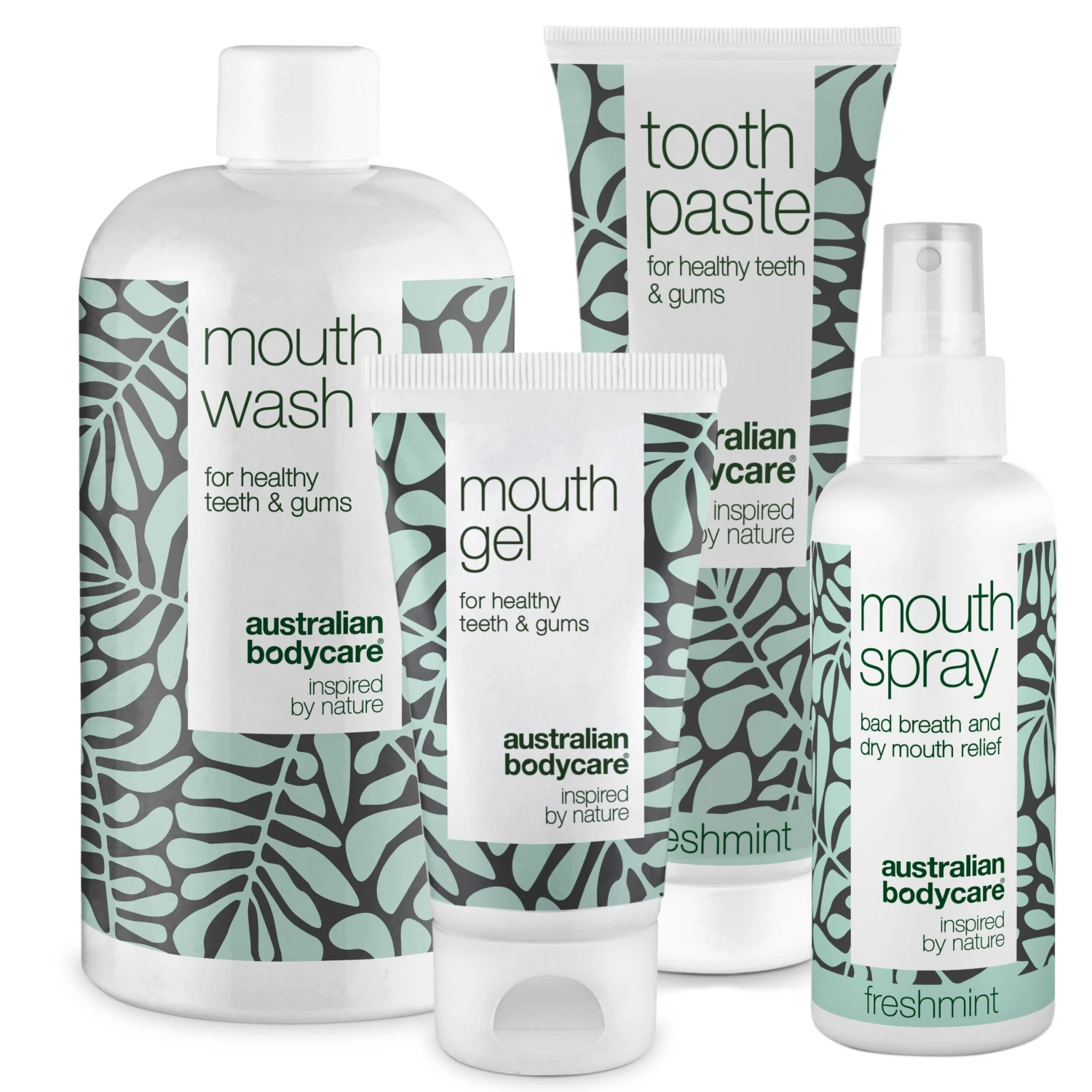 Do you suffer from dry mouth? The pack of 4 oral products adds moisture and care to dry mouth and prevents discomforts such as irritated gums and bad breath | Toothpaste, mouthwash, mouth gel and mouth spray. Cares for and moisturise teeth, gums and tongue and reduce dry mouth | Cleanses mouth and counteracts bacteria.