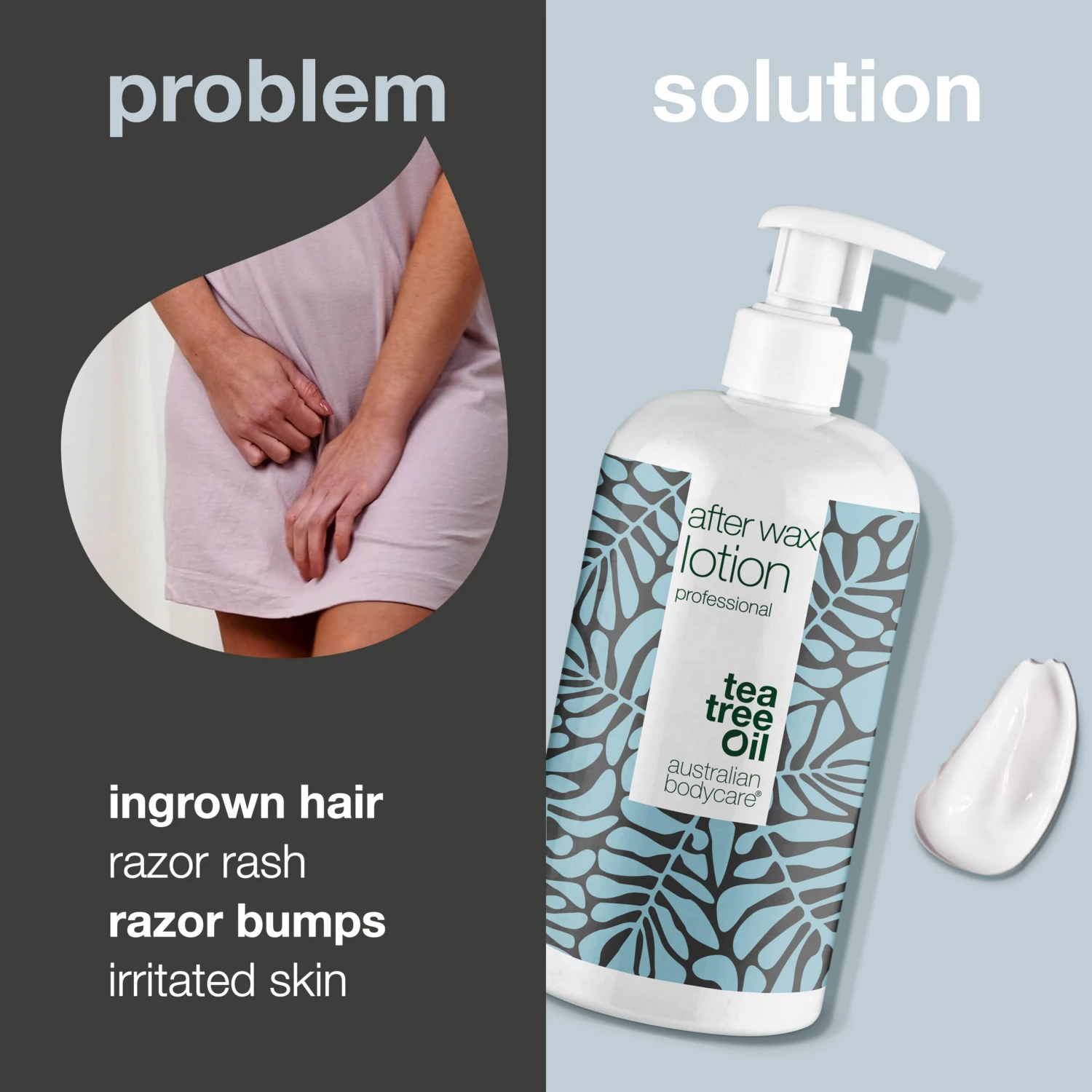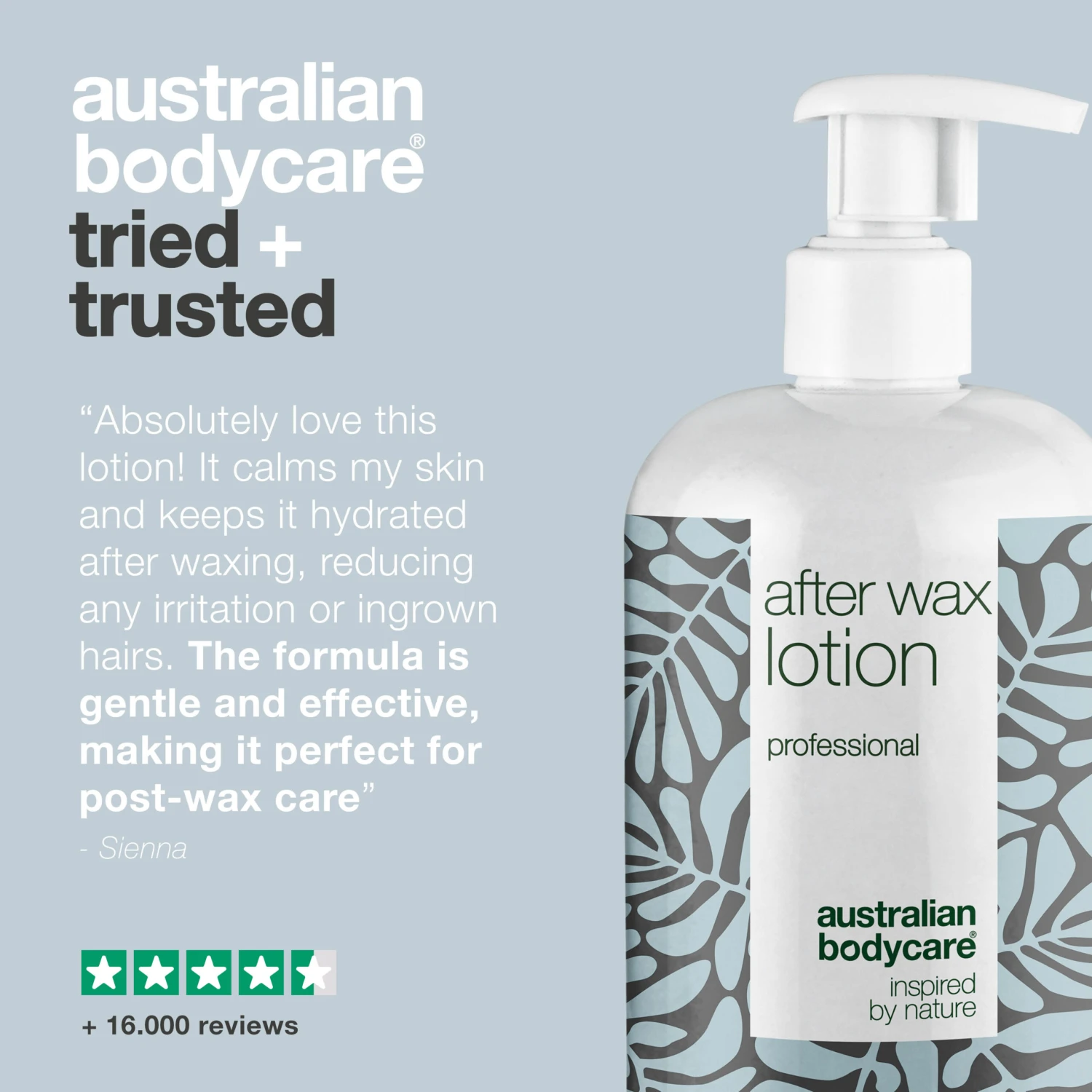 After Wax Lotion (1000 ml.) moisturises and conditions the skin after waxing | Can be used as a daily lotion and moisturiser | Minimises the occurrence of ingrown hairs, red razor bumps and irritated skin after waxing | After Wax Lotion is part of the professional range created for beauty salons and clinics | Ideal after waxing or shaving | 100% vegan and with natural Tea Tree Oil.