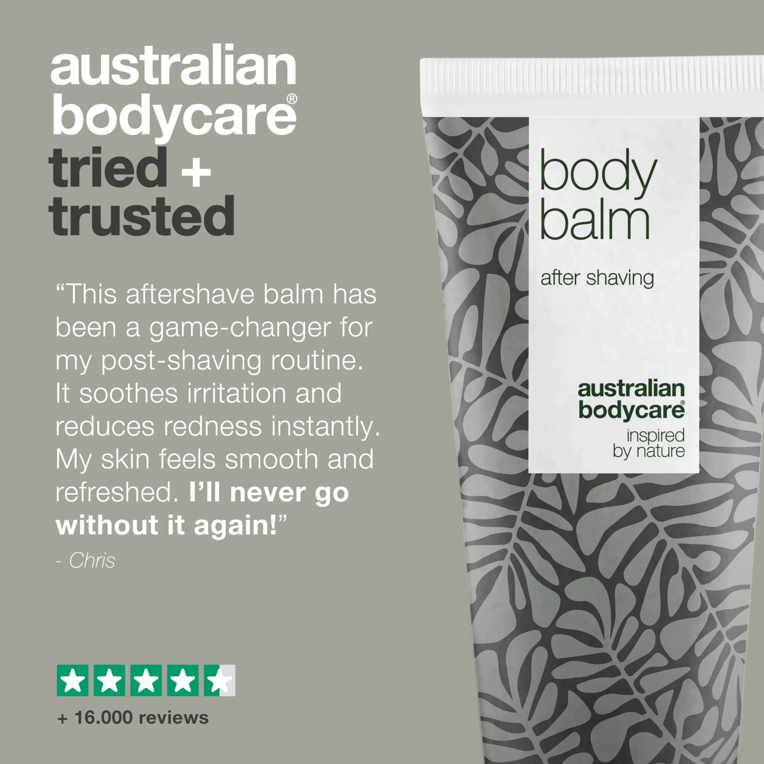 You want to get rid of red razor bumps and ingrown hair? Body Balm (200 ml) relieves skin irritation after shaving | 100% natural Tea Tree Oil counteracts bacteria | Tasmanian pepperberry soothes the skin and reduces irritation, itching and redness | The cream is quickly absorbed by the skin.