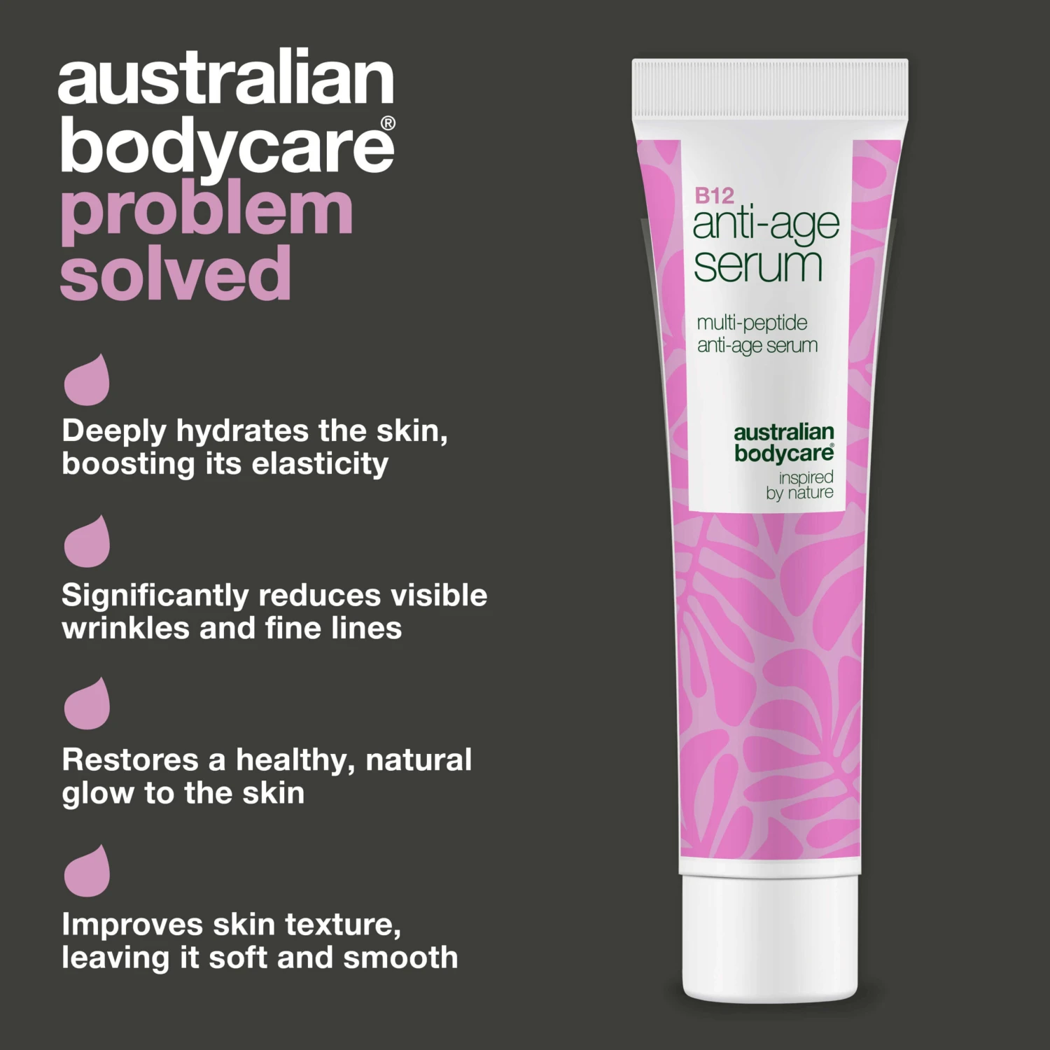 With over 30 years of experience in problem-solving skincare, Australian Bodycare has developed products that are natural, vegan, and dermatologically tested. B12 Anti Age Serum is a scientifically developed product inspired by nature, delivering visible results.