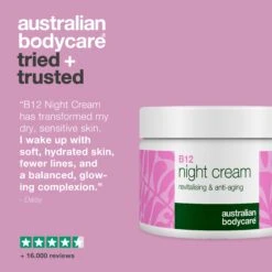 With B12 Night Cream, you’re not only getting an anti-age night cream, but a solution tailored to meet your skin’s nighttime needs. Pair this night cream with Australian Bodycare’s day cream to achieve the ideal balance in your skincare routine.