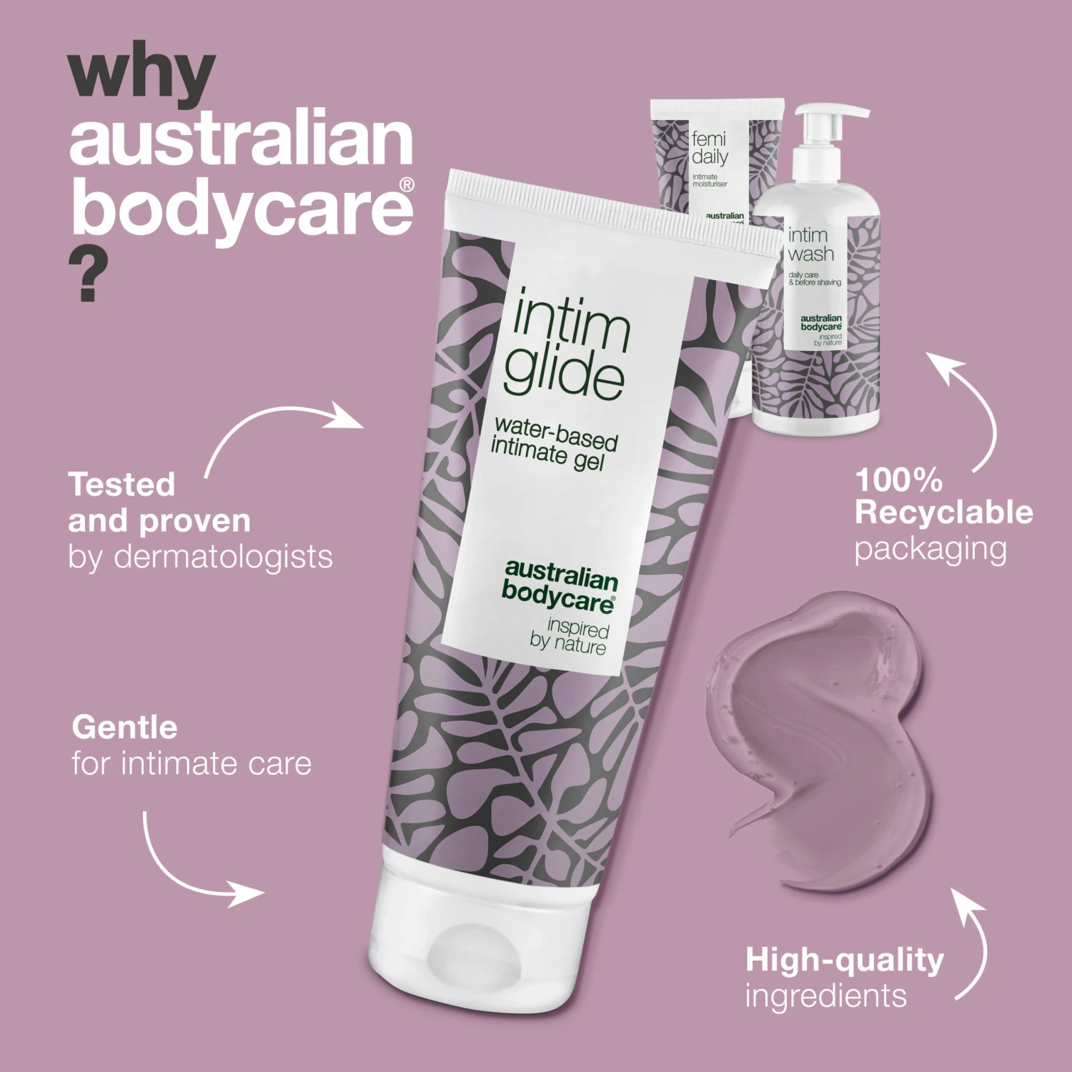 The pack is made up of 3 intimate products: intimate soap (500 ml), Femi Daily (100 ml) and Intimate Glide intimate gel (100 ml).