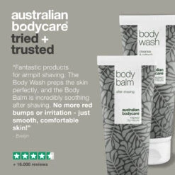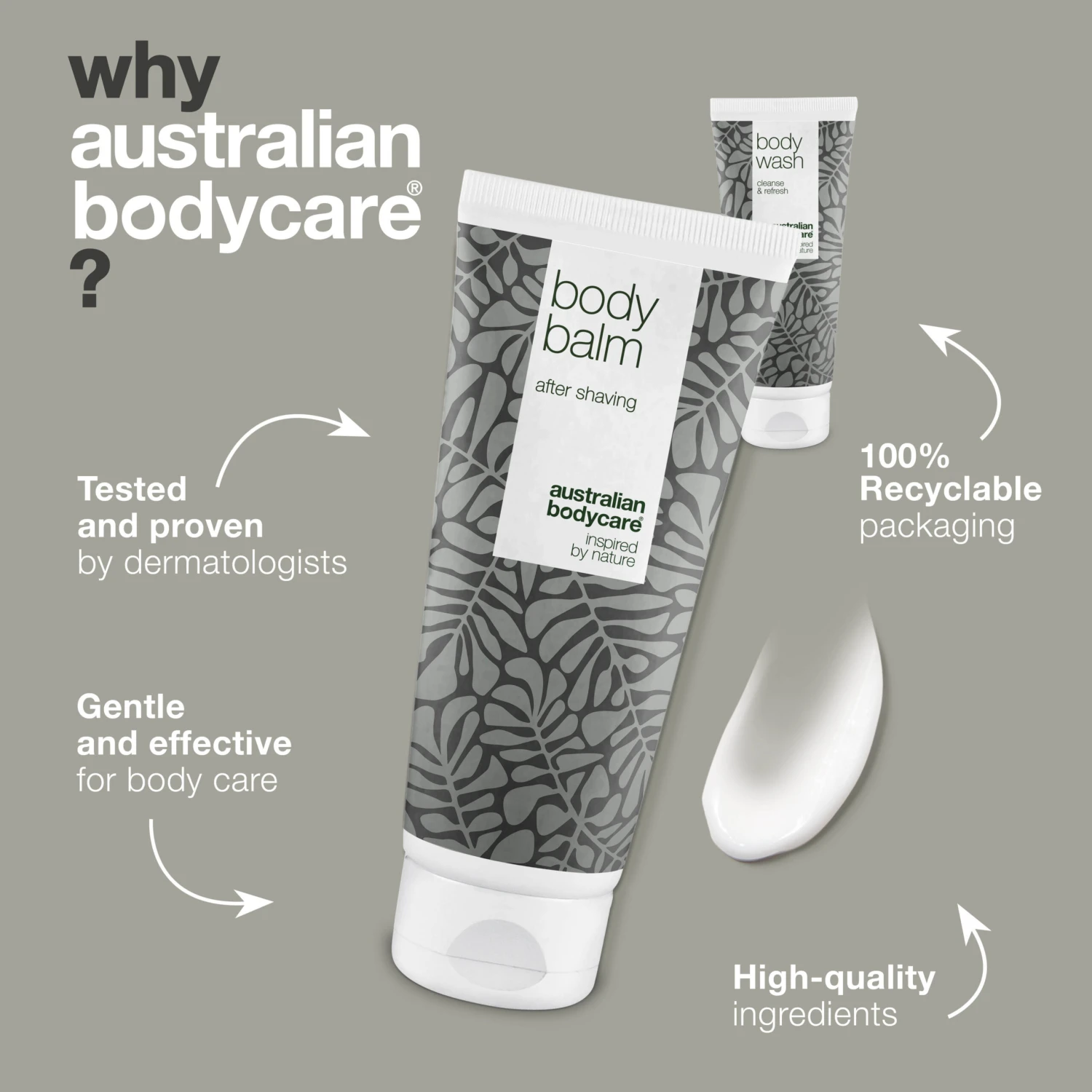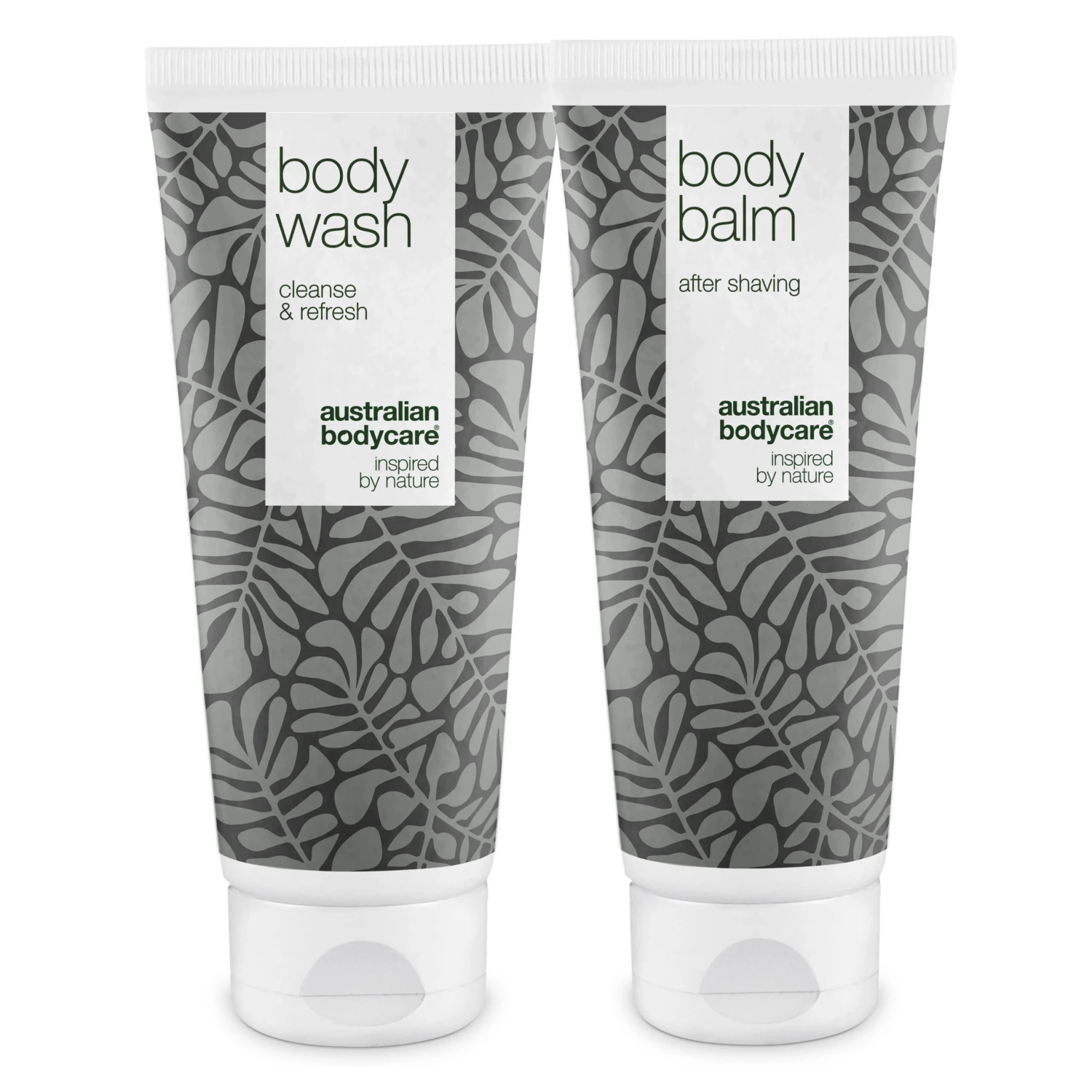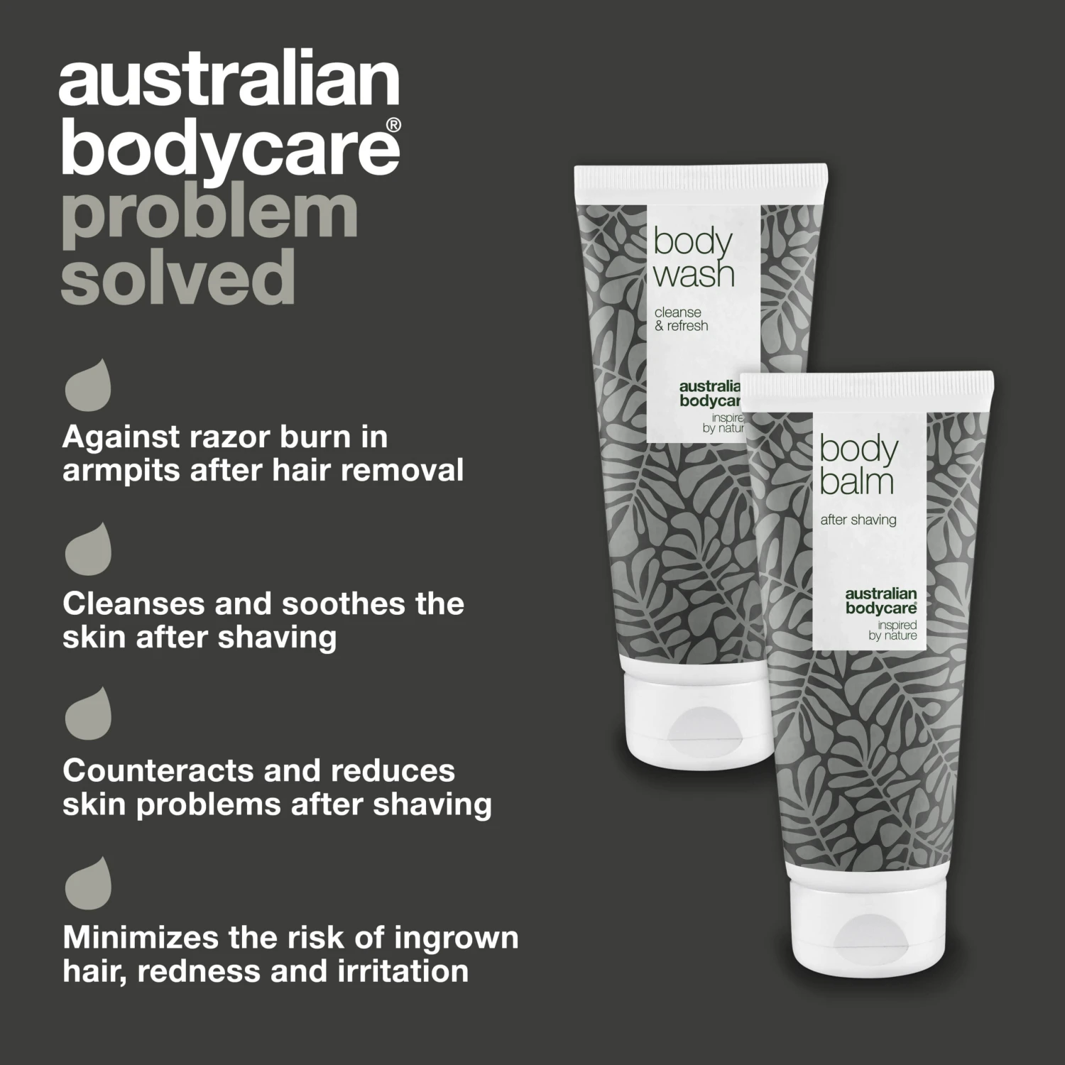 Problems with red bumps after shaving under the arms? 2 products for skin problems after shaving | Body Wash cleanses the skin before shaving and Body Balm cares and soothes the skin after shaving | Counteracts and reduces skin problems after shaving | 100% natural Tea Tree Oil counteracts bacteria.