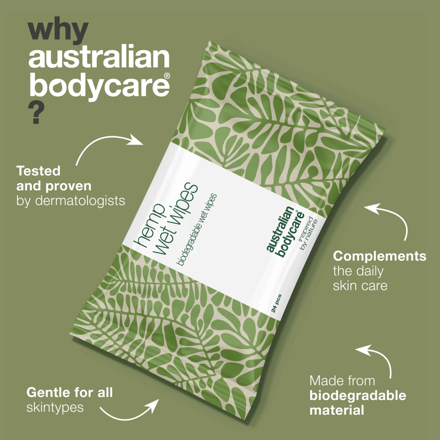 These wipes are a must-have in your bag, car, or gym kit when you need a quick refresh. For optimal skincare, we recommend combining them with our Body Wash and Body Lotion from Australian Bodycare to keep your skin clean, healthy, and well-nourished every day.