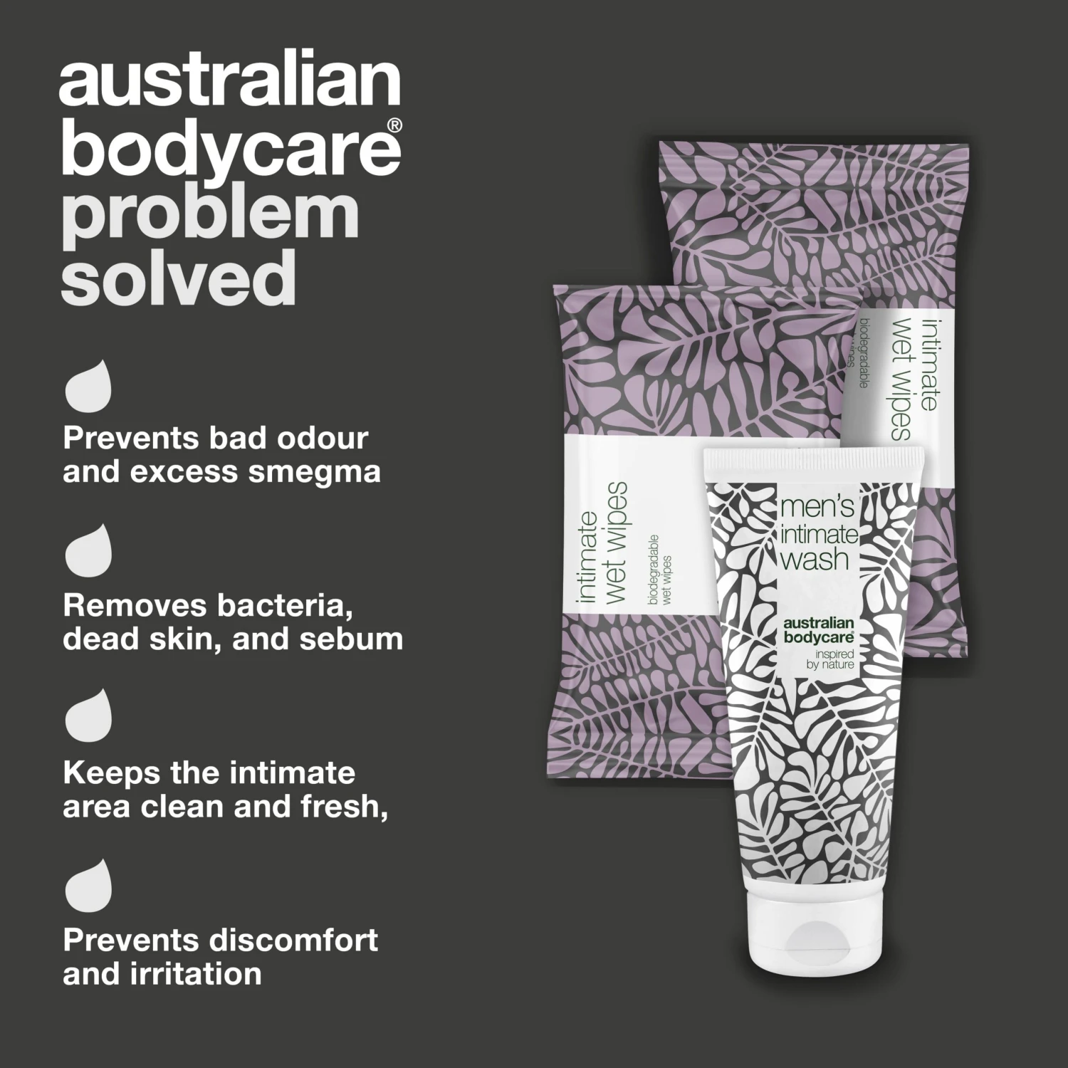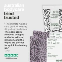 Men’s intimate soap (200 ml) + intimate wet wipes (2×24 pcs.) for daily cleansing of dick cheese in the intimate area | The intimate products reduce and prevent dead skin cells, sebum, sweat and bacteria that can develop into dick cheese | Counteracts unwanted odour from smegma | For men and women | pH-adjusted for the intimate area | Dermatologically tested.