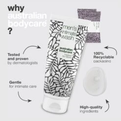 The package contains 1 men’s intimate soap (200 ml) and 2 intimate wet wipes (2×24 pcs.).