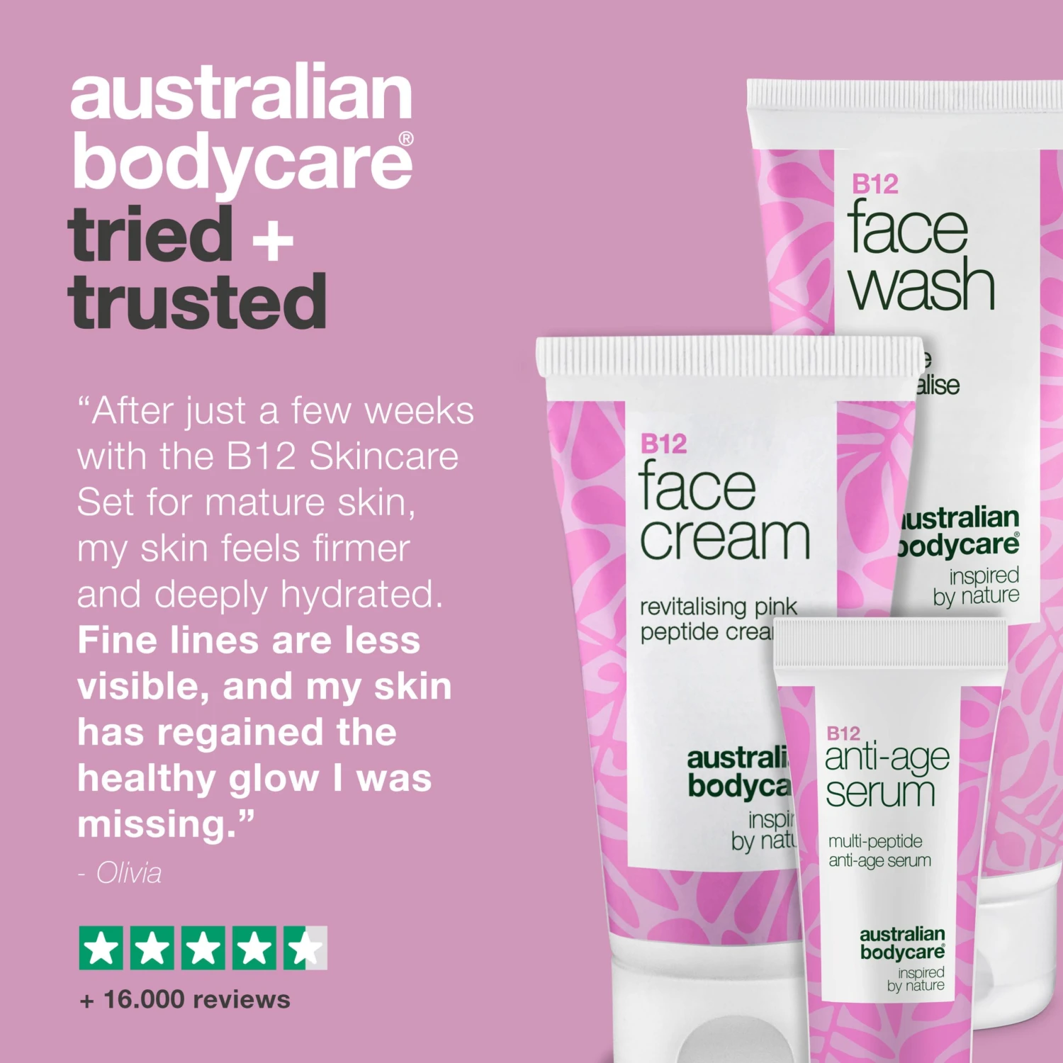 At Australian Bodycare, we offer a 100% satisfaction guarantee on all our products. Give your skin the care it deserves – try our B12 Skincare Set for mature skin today and see the difference!