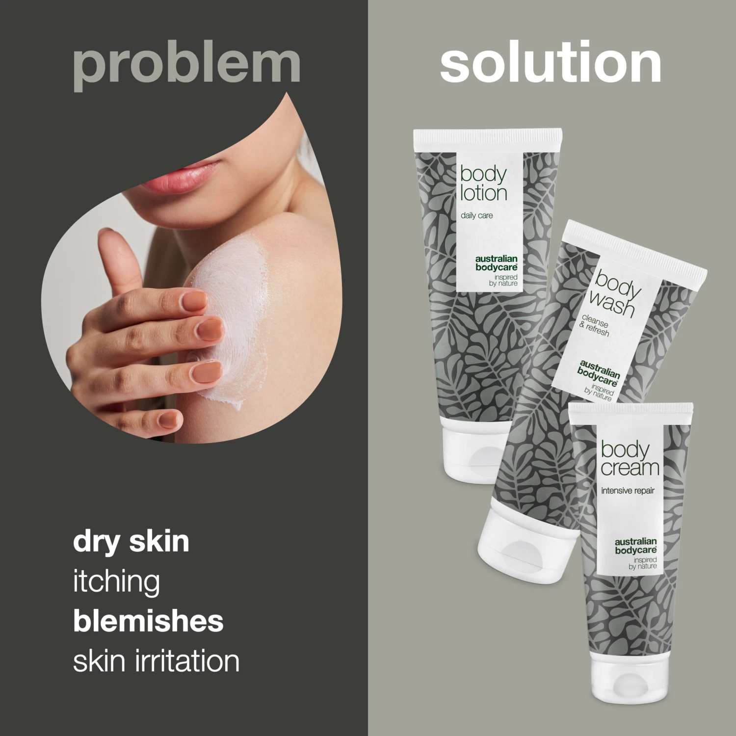 3 products that nourish, cleanse, and add moisture to the skin, while reducing skin irritation | The 100% natural Australian Tea Tree Oil counteracts bacteria, has a cleansing effect and maintains a clean skin.
