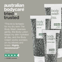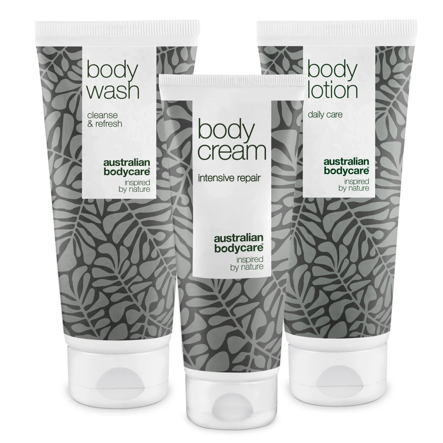 The kit contains Body Wash 200 ml, Body Lotion 200 ml and Body Cream 100 ml.