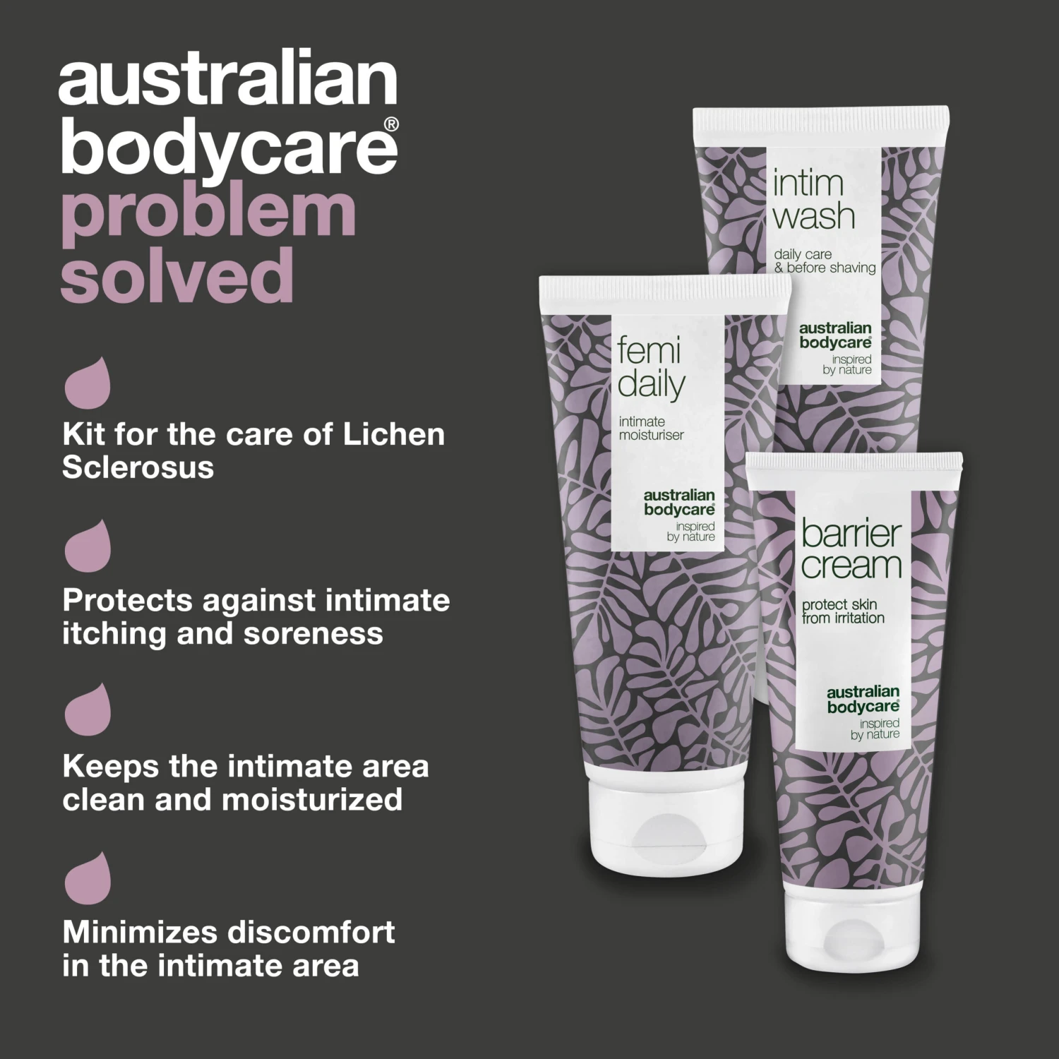 The package includes Intimate Soap 200 ml, Femi Daily Intimate Gel 200 ml and Barrier Cream 100 ml.