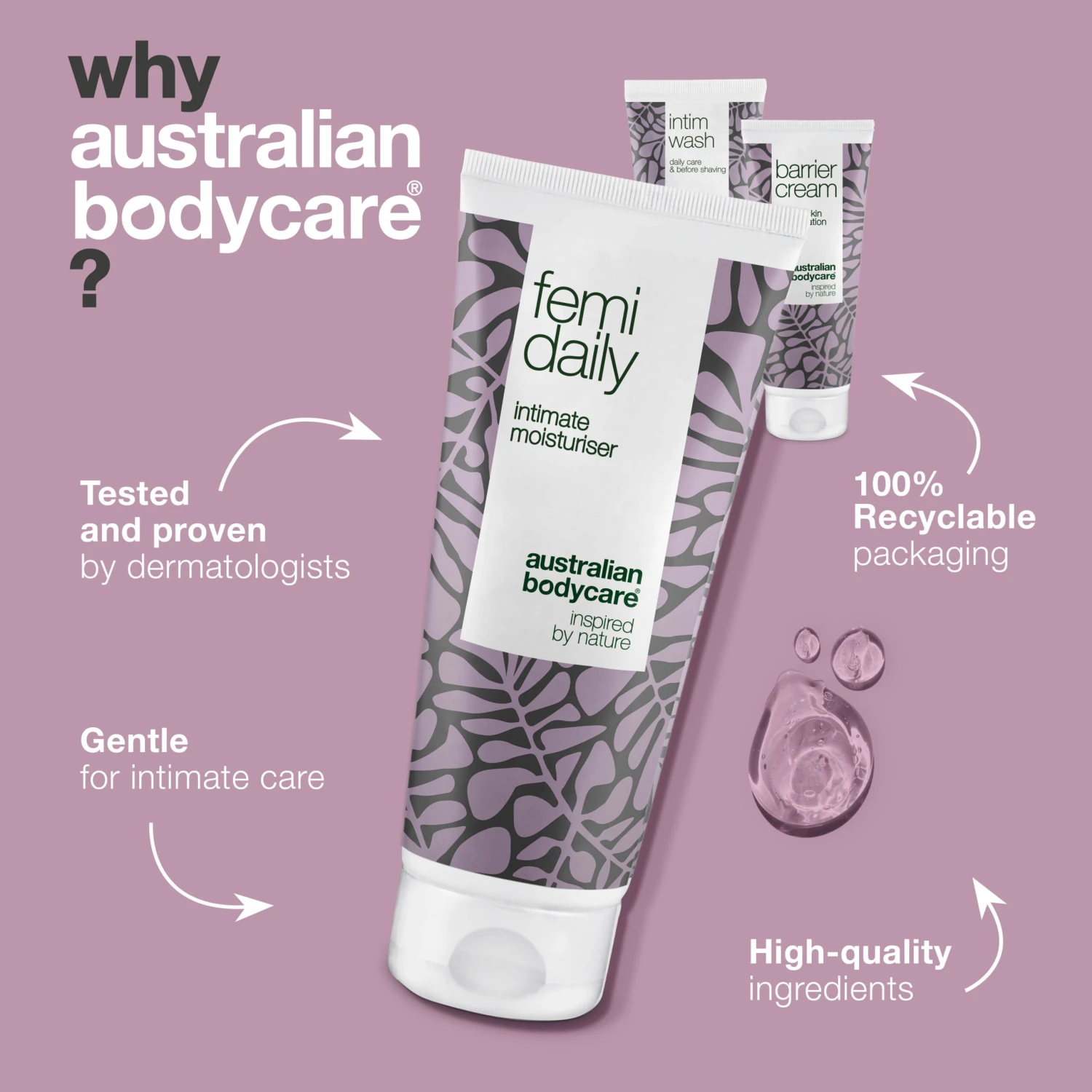 3 products for itching and soreness in the intimate area | Keeps the intimate area clean, moisturised and protected | Intimate soap with lactic acid for daily washing of the intimate area | Femi Daily minimises itching and stinging in the intimate area | Intimate barrier cream keeps skin protected from soreness and irritation.