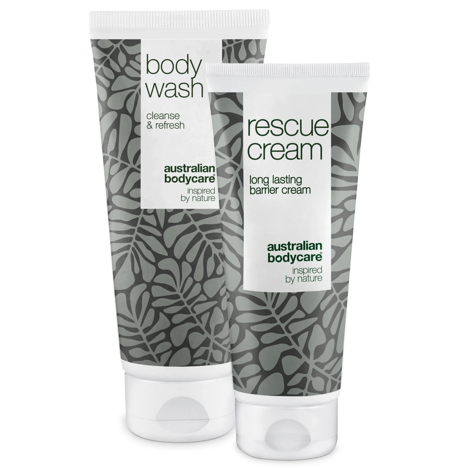 The kit contains Body Wash 500 ml. and Rescue Cream 100 ml.