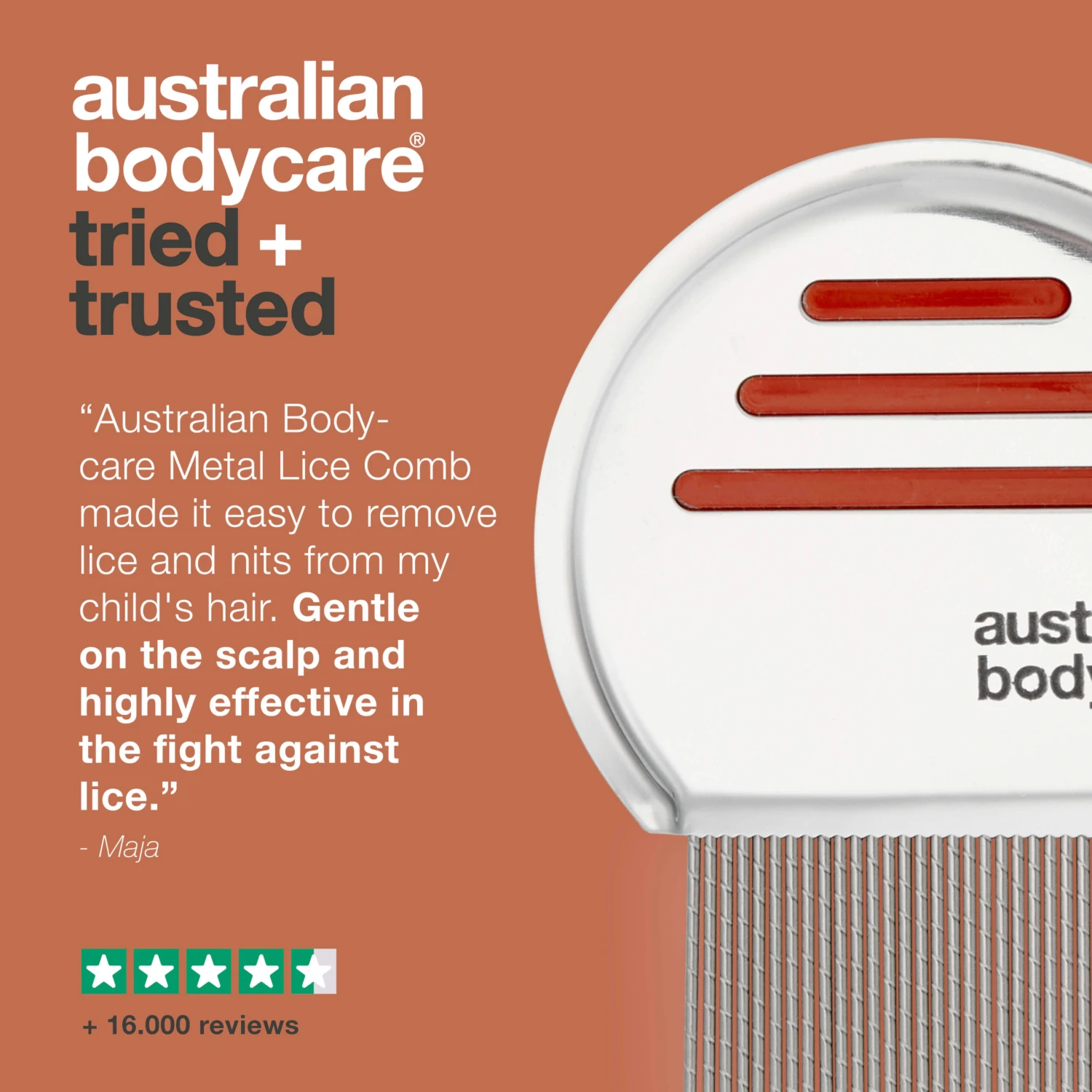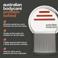 “Our Metal Lice Comb is designed to make lice removal easier. We focused on an ergonomic design that is comfortable to use while ensuring the tightly spaced teeth effectively remove both lice and nits. This comb truly makes a difference in the fight against lice.” – Australian Bodycare Product Developer
