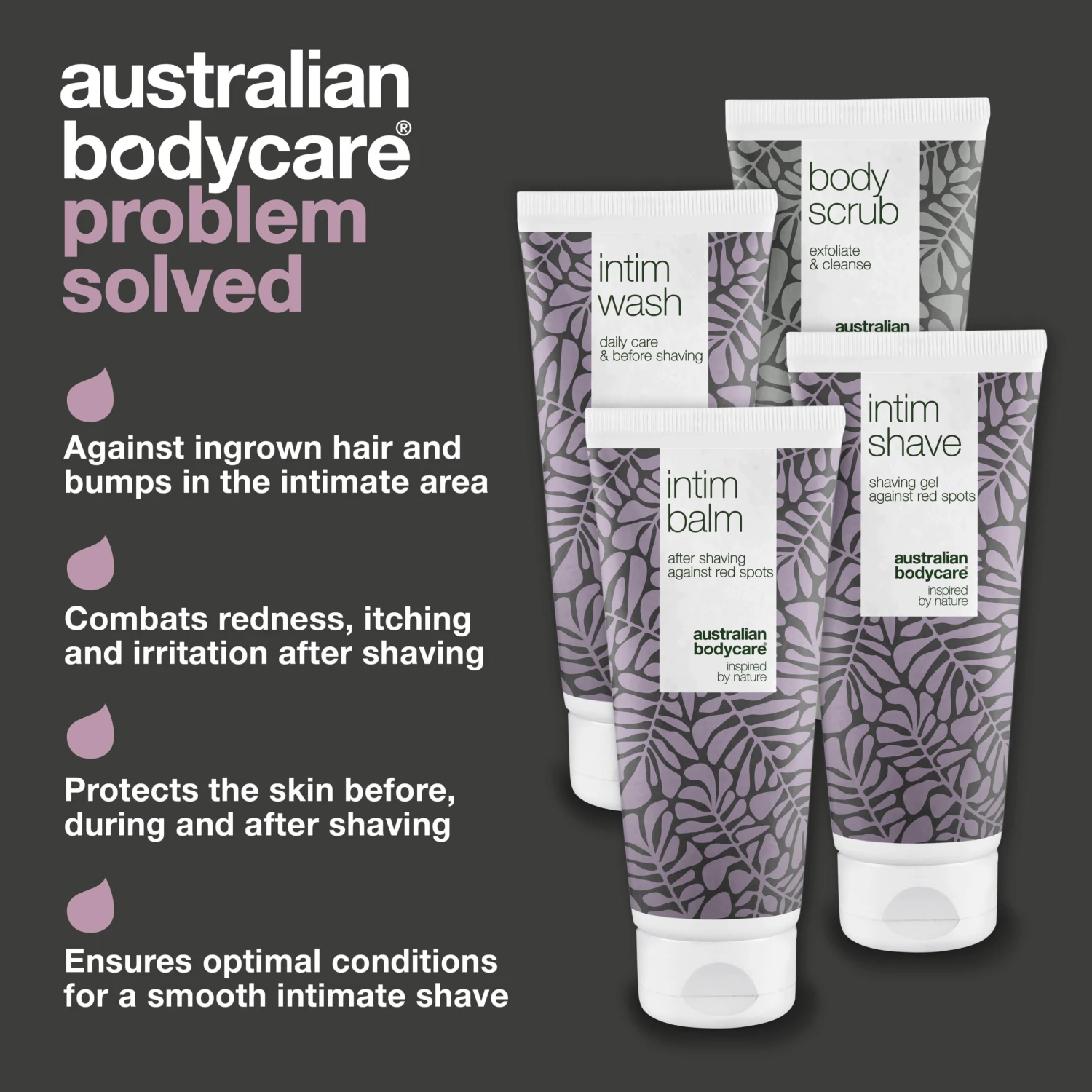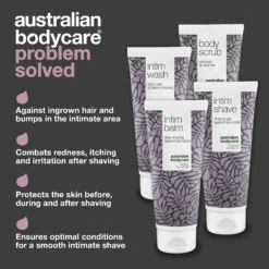 Intimate soap, scrub, shave gel and intimate aftershave combat redness, itching and irritation after shaving | Protects skin and minimises the appearance of ingrown hairs, redness and beard pimples before, during and after shaving | For both men and women | Tea Tree Oil soothes and minimises skin problems.