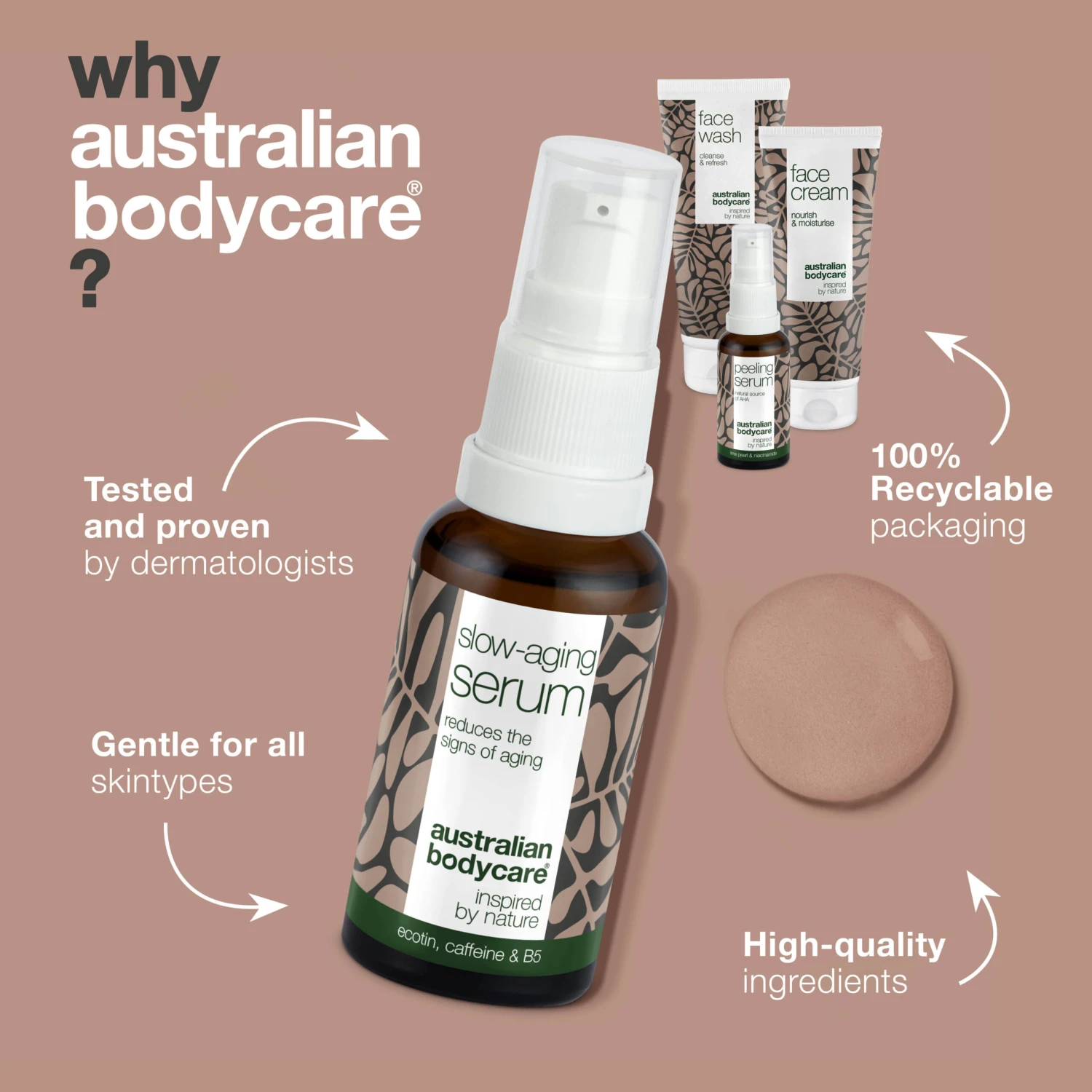 Package contents: Face Wash (200 ml), Slow-aging Serum (30 ml), Peeling Serum (30 ml) and Face Cream (100 ml).