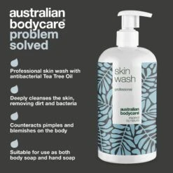 Skin Wash for professional use | Suitable as body soap and hand soap | Effective against dirt, bacteria and skin problems, e.g. spots on the back, skin problems and itching | Ideal before hair removal with wax or shaving | Natural Tea Tree Oil keeps the skin healthy | 100 % vegan.
