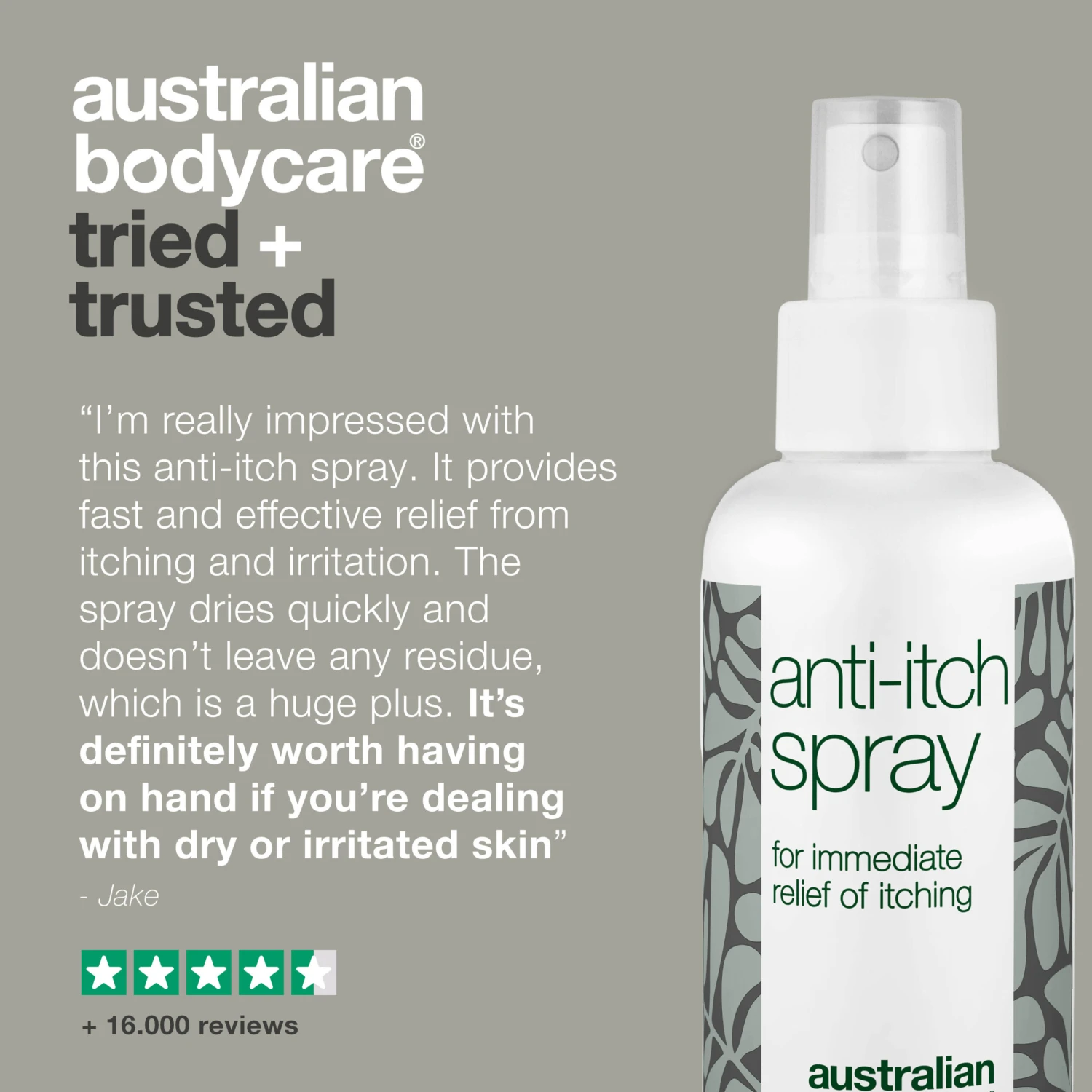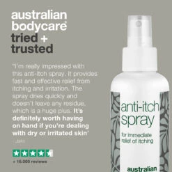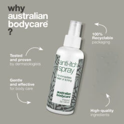 This Anti Itch Spray was specifically developed to provide quick relief from itching and irritation. We harnessed the power of nature by including Lemon Myrtle Leaf Oil and Tasmannia Lanceolata Fruit/Leaf Extract, which are known for their soothing properties. This makes the spray a fantastic choice for anyone suffering from itchy skin.