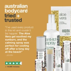 The kit consists of a pack of lip balm (x 3 ), Spot Stick (9 ml), Aloe Vera gel (200 ml) + 1 calming spray for body and face (100 ml).