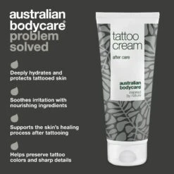For optimal tattoo care, we recommend using Tattoo Cream in combination with a mild body wash from Australian Bodycare to gently cleanse the skin without drying it out. This helps maintain the vibrancy and longevity of your tattoo for years to come.