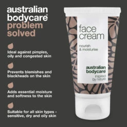 Australian Bodycare Face Cream 50ml β Face moisturiser, perfect for spots, pimples, oily, and acne prone skin. With 100% pure, pharmaceutical grade Australian Tea Tree Oil.