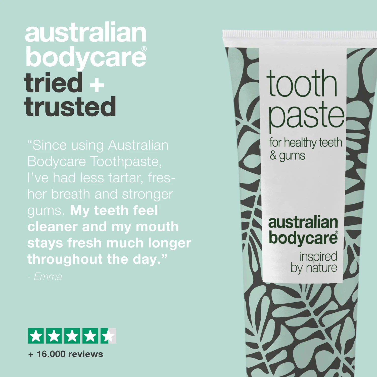 Discover the power of nature in the fight against tartar with Australian Bodycare Toothpaste. This specially formulated toothpaste is enriched with Tea Tree Oil, an effective natural ingredient known for its cleansing properties, helping to combat plaque and prevent tartar formation.