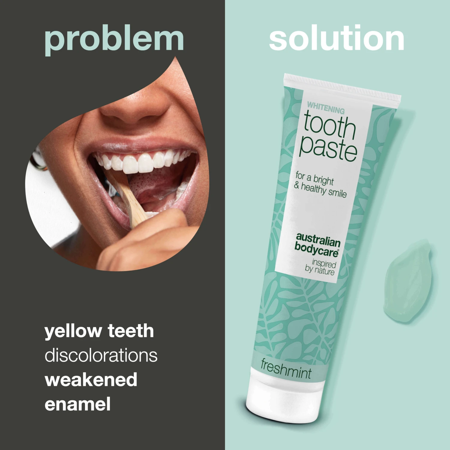 “We created this unique whitening toothpaste with inspiration from nature, providing you with an effective yet gentle way to achieve whiter teeth. The combination of active ingredients ensures visible results while supporting your overall oral health.”